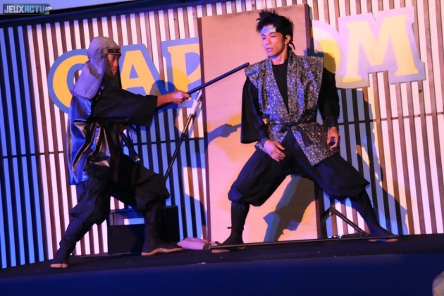 Ceux qui savent compter, noterons qu'il manque une quatrième annonce à l'appel. Après enquête, celle-ci sera vraisemblablement faite après le Tokyo Game Show, histoire de laisser passer l'effervescence lié au salon tokyoïte. On peut donc raisonnablement supposer qu'il s'agira d'une grosse production pour que Capcom prenne ce genre de précaution ; et même si l'on croise les doigts au sein de la rédac' pour que cette annonce concerne un nouvel épisode de la saga Darkstalkers, il est fortement probable que Resident Evil 6 soit aussi dans le coup. Décidé à bien faire les choses, Capcom a ensuite poursuivi les festivités avec quelques animations sympathiques, comme un combat opposants plusieurs ninjas ou ce confiseur capable de créer des sucettes à l'effigie des personnages les plus célèbres de Capcom. On n'oubliera pas non plus de signaler la présence de DJ Amiga derrière les platines du Gopachi, une véritable pointure au pays du Soleil Levant paraît-il ; relayée ensuite par le groupe Aural Vampire et sa chanteuse Exo-Chika. Quoi qu'il en soit, Capcom est décidé à secouer toute l'industrie du jeu vidéo avec des projets qui ne cessent de s'empiler sur son bureau. En espérant que la qualité soit vraiment au rendez-vous.