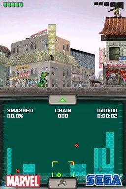 Dans la foulée des images des versions PS3 et Xbox 360 de The Incredible Hulk, Sega dévoile les clichés de la mouture DS. Comme toujours avec les titres multisupports, il s'agira d'une autre version du jeu, adaptée au support avec ici, une réalisation en 2D et un scrolling horizontal. A l'ancienne en somme. Sortie prévue pour juin 2008 également.