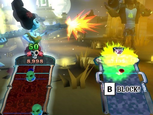 On reprend notre tour d'horizon des jeux THQ présentés lors de son Gamer's Day de San Francisco, qui a eu lieu le jeudi 3 avril dernier, par une nouvelle fournée d'images de Band Mashups, rebaptisé en Battle of The Bands. Il s'agit d'un jeu musical développé spécialement sur Wii et qui n'est pas sans rappeler un certain Guitar Hero dans son principe. Mais là où le titre d'Activision se contente juste du rock, celui de THQ et de Planet Moon proposera 5 styles différents puisqu'on aura droit à du hip hop / funk, du rock, de la country, de la fanfare et du latino. Un beau programme.
