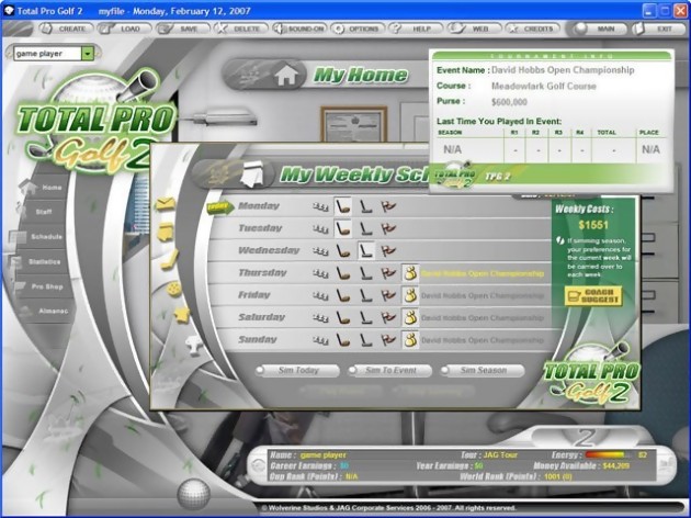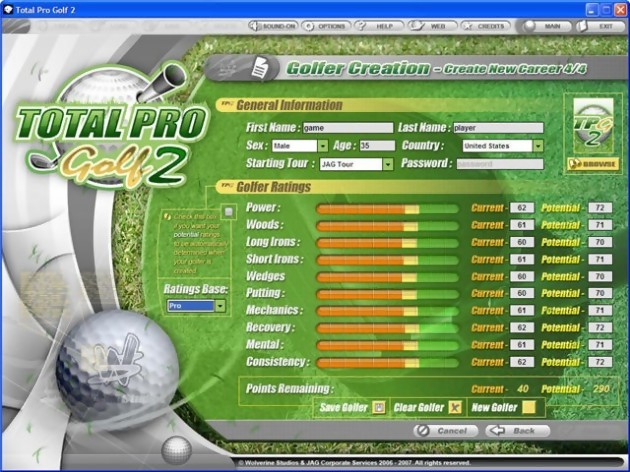 A tous les impatients qui ont hâte de découvrir Tiger Woods PGA Tour 08 à la rentrée, Wolverine Studios leur propose de passer l’été à putter sur leur PC grâce à Total Pro Golf 2. Disponible dès aujourd’hui en téléchargement sur ce site, le soft coûte 29,95$ et se veut très complet avec plusieurs modes de jeu, plus de parcours que la précédente mouture et une générateur d’avatar inédit.