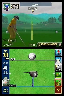Nintendo présente un nouveau swing d'images de Nintendo Touch Golf : Birdie Challenge dont la sortie en Europe est imminente puisque prévue pour le 18 novembre prochain. Aux antipodes d'un Mario Golf, Nintendo Touch Golf : Birdie Challenge se veut avant tout un jeu de golf réaliste en utilisant les fonctionnalités de la DS. A l'aide du stylet, il faudra dessiner sa propre trajectoire, tout en imitant le swing du golfeur. Un exercice on ne peut plus délicat à tester dans une dizaine de jours.