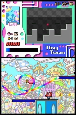Tout juste sorti au Japon où il rencontre un franc succès, Touch! Kirby's Magic Paintbrush fait à nouveau parler de lui par cette nouvelle distribution de screenshots. Outre la présence d'un stylet rose bonus offert en cadeau avec le jeu, Touch! Kirby's Magic Paintbrush est désormais connu pour son gameplay frais et innovant (un Yoshi Touch & Go en plus profond) qui permettra aussi bien d'apprécier l'utilisation des deux écrans et d'un gameplay basé sur le stylet. On dirige Kirby, on exécute des tracés arc-en-ciel pour lui permettre d'atteindre des plates-formes supérieures, on lui demande d'ouvrir la bouche pour avaler ses ennemis, bref il vous obéira au doigt et à l'oeil. Si le jeu est d'ores et déjà prévu aux Etats-Unis pour le 13 juin, on attend encore une date de sortie européenne.