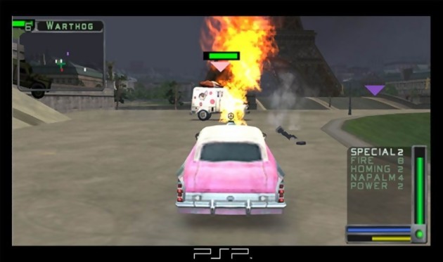 On continue du côté des images PSP de la part de Sony qui distille cette fois-ci des visuels de bonne taille de Twisted Metal : Head-On. Dans ce jeu de stocks car, le but est simple : détruire le plus rapidement ses adversaires par tous les moyens possibles et inimaginables. Pour ce faire, rien de tel qu'un arsenal conséquent pour froisser de la tôle comme il se doit. Seize environnements sont annoncés qui se situent pour certains dans des lieux plutôt célèbres tels les pyramides d'Egypte ou au pied de la Tour Eiffel. Outre un mode arcade en solo, il sera possible de se fritter jusqu'à 8 personnes par Wi-Fi. Sortie programmée pour le 24 mars aux Etats-Unis.