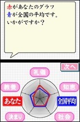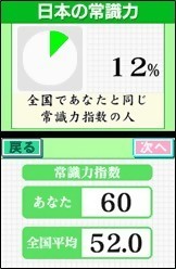 Parce qu’on sait que vous adorez les jeux imprononçables en japonais, voici le site officiel de – on respire un grand coup – Nippon Joushikiryoku Kenteikau Kanshuu : Imasara Jin ni wa Kikienai - Otona no Joushikiryoku Training DS. Heureusement que l’appellation « Training DS » est là pour nous donner une indication sur le genre de soft de cette nouvelle production Nintendo pour la console tactile. Après les jeux de logique et de mémoire hier, voici venir un autre jeu de réflexion qui vous permettra de faire des prouesses avec votre matière grise.