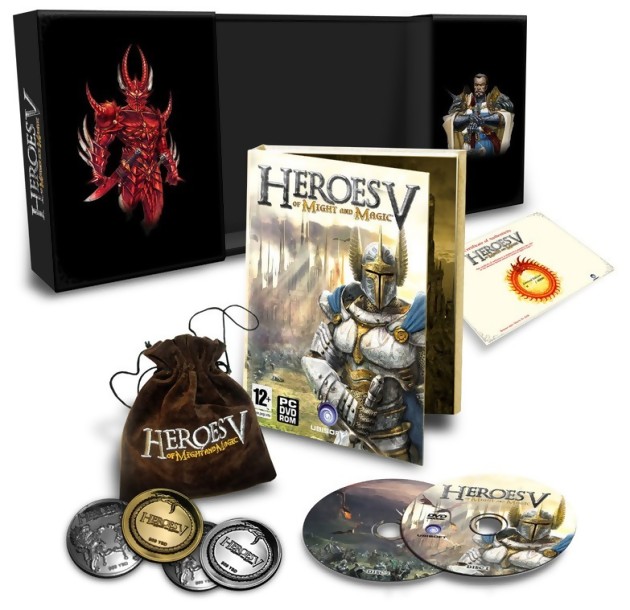 Pour la sortie prochaine de Heroes of Might and Magic V, Ubisoft a fait les choses en grand en proposant aux fans de la série une édition « Super Collector ». Exclusivement disponible sur la boutique d’achat en ligne de l’éditeur, le packaging comprendra le jeu en format DVD bien évidemment mais aussi une carte détaillée du Monde d’Ashan, un art-book et un DVD Bonus sur la réalisation du jeu. Et parmi les 4.000 coffrets frappés des deux héros emblématiques de la série que sont Godric et Agrael, 3.999 contiendront un écu d’argent à l’effigie de Urgash (Dragon du Chaos) et du Griffon Impérial symbole de l’Empire. Seul une édition bénéficiera de l’unique pièce d’or synonyme d’un PC complet d’une valeur de 1.699€. Voilà qui fait rêver ! Pour plus d’informations sur cette opération, rendez-vous sur cette page. Pour mémoire, Heroes of Might and Magic V sortira en Europe le 18 mai prochain.