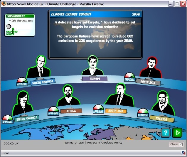 Quant la crise écologique sur les gaz à effets de serre prend de l’ampleur et s’immisce dans les jeux vidéo, cela donne Climate Challenge, un titre un peu particulier proposé par Red Redemption. Vous devrez gérer les décisions parlementaires européennes de l’an 2000 à 2010 afin de réduire le problème du climat qui change d’année en année, la fonte des derniers galciers ou encore l’imminente augmentation de la surface des mers et des océans. Avant que tout ceci ne soit une réalité, Red Redemption propose le soft en téléchargement sur le site bbc.co.uk la semaine prochaine.