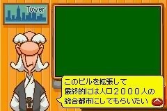 Parmi les jeux au concept étrange mais pour le moins original, The Tower SP peut à l'instar de Sennen Kazoku, tenir le haut de l'affiche. Dans ce petit jeu de gestion sur GBA, vous devrez organiser de manière intelligente votre building, afin de veiller au bien-être de ses occupants. Pour ce faire, il va falloir gérer les files d'attentes au sein des étages, placer des boutiques ou des ascenseurs aux bons endroits, bref être un architecte à la hauteur de votre réputation. La sortie de The Tower SP est prévue pour le 28 avril au Japon et uniquement là-bas.