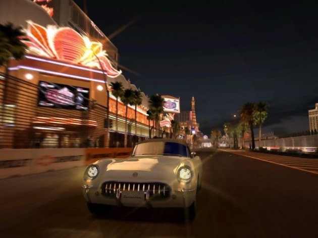 Ah la la, Las Vegas, la ville de toutes les folies… Puisque cette localité kitschissime sera traversée par les bolides de Gran Turismo 4, Sony vient de lâcher une bonne cinquantaine de nouvelles images de son jeu dans les rues de la vraie cité du vice. L’occasion pour nous de voir les célèbres hôtels de Vegas dont le Caesar Palace bien connu des amateurs du noble art ou encore la réplique de la Tour Eiffel. Quelle belle ville !
