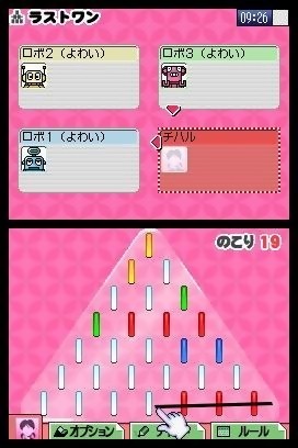 Avec Daredemo Asobi Taizen, Nintendo compte bien toucher son nouveau public, celui qui a déjà adopté les Project Rub et autres WarioWare. Sur le modèle de ces jeux titres, Daredemo Asobi Taizen propose une cinquantaine de mini-jeux dans un esprit plus classique puisqu'on trouvera des épreuves de bowling, fléchettes, jeux de cartes, échecs, jeu de gô et divers jeux typiquement japonais. Chacun de ces mini-jeux pourra se jouer jusqu'à 8 joueurs en simultané avec en bonus la possibilité de communiquer avec ses partenaires via un logiciel de chat intégré, histoire de chambrer ses amis. Bien vu. La sortie de Daredemo Asobi Taizen est fixée au 3 novembre prochain au Japon. Aucune sortie n'est prévue en dehors de l'archipel nippon. Dommage.